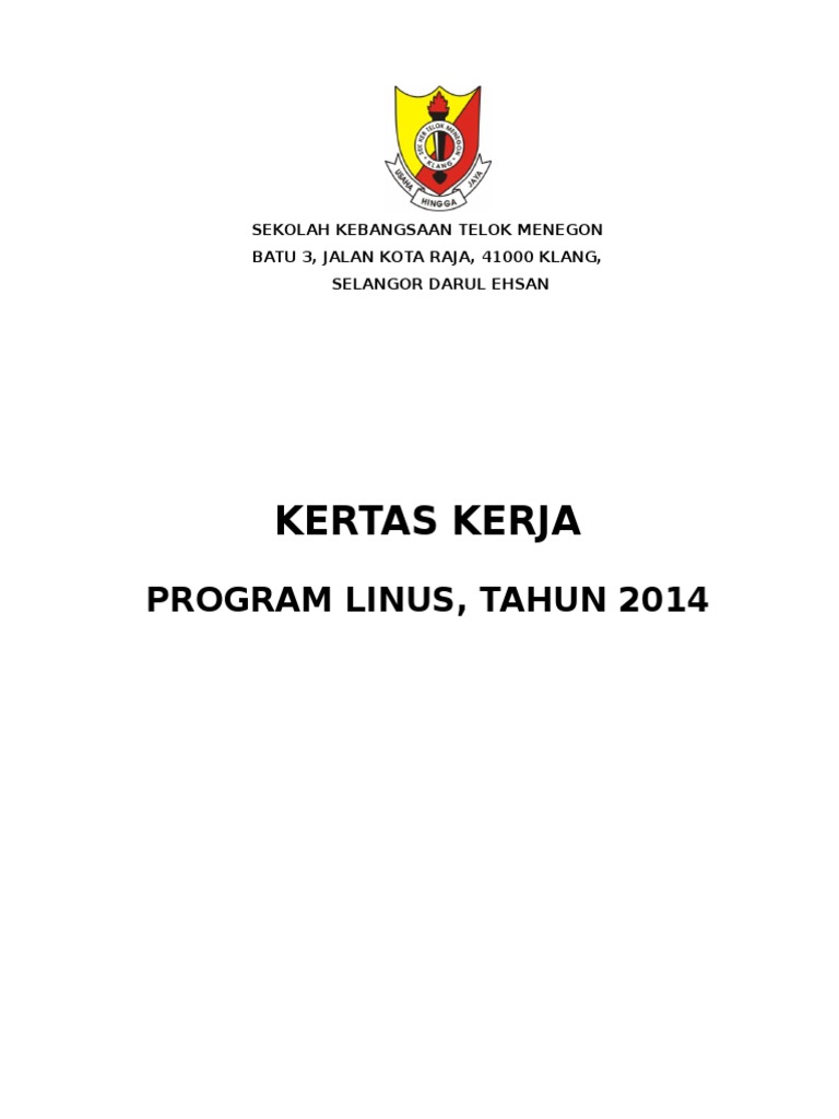 . Kertas kerja ini disediakan sebagai makluman dan kelulusan pihak sekolah untuk mengadakan majlis perjumpaan ibu bapapenjaga LINUS dan Pemulihan Khas. 70 Jawatan kuasa Induk Program Bijak LINUS 2012. KM31 JALAN NAKA06350 POKOK SENA.