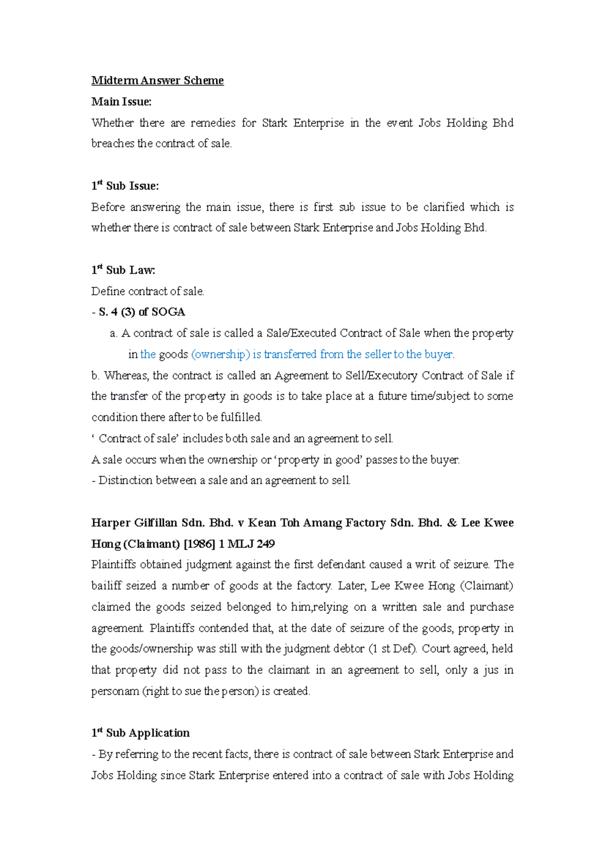 1930 Midterm Answer Scheme Midterm Answer Scheme Main Issue Whether There Are Remedies For Stark Studocu